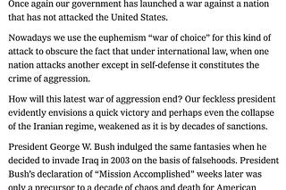 How to Characterize Trump's Iran Attack: "War of Choice" or "Aggression"?