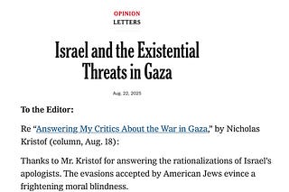 My New York Times Letter: The War in Gaza Does Not Represent Pointless Violence. Its Purpose: Cleansing Gaza of Palestinians